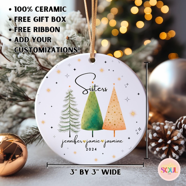 Surprise your sisters with this thoughtful and unique Christmas gift that will warm their hearts and bring a smile to their faces. It’s perfect for any occasion, whether it’s a birthday, anniversary, or simply a way to express your love and appreciation. The Sister Ornament is not only a beautiful decoration but also a meaningful reminder of the special bond you share with your sisters.